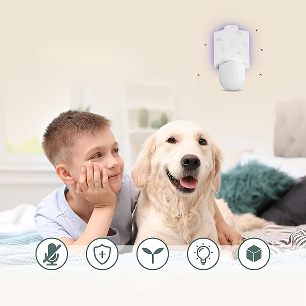 TRAPKO използва ултравиолетова светлина, за да привлича и улавя комари, молци и други летящи насекоми. Лепкавата плоча гарантира, че вредителите се улавят безшумно, за да можете да спите спокойно.