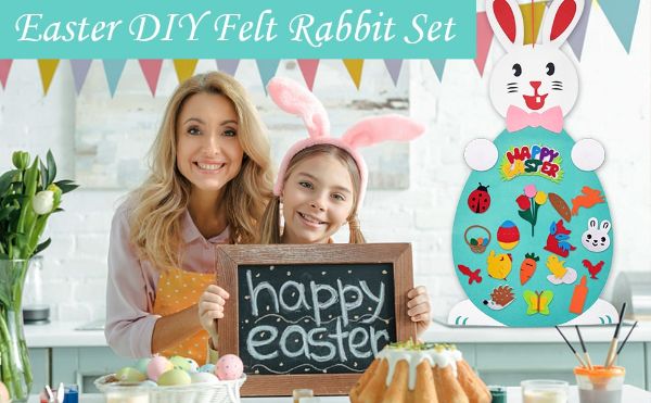 Нашият „направи си сам“ комплект за великденско зайче е изработен от висококачествен филц и е нетоксичен и екологичен. Декорацията е за многократна употреба. Може да се сгъне и прибере за следващия празник.