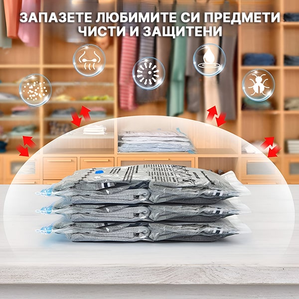 ⚡ Готови за 60 секунди – Компресирайте дрехи, спално бельо и други за по-малко от минута