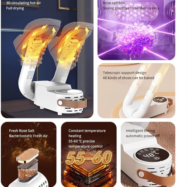 Равномерно разпределя топлината, за да изсуши обувките без прегряване или деформиране на материалите.