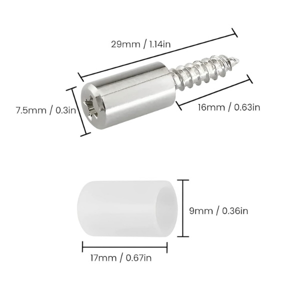 Размери: Винт: 24 x 7 x 12 мм, Силиконова капачка: 15 x 9 мм