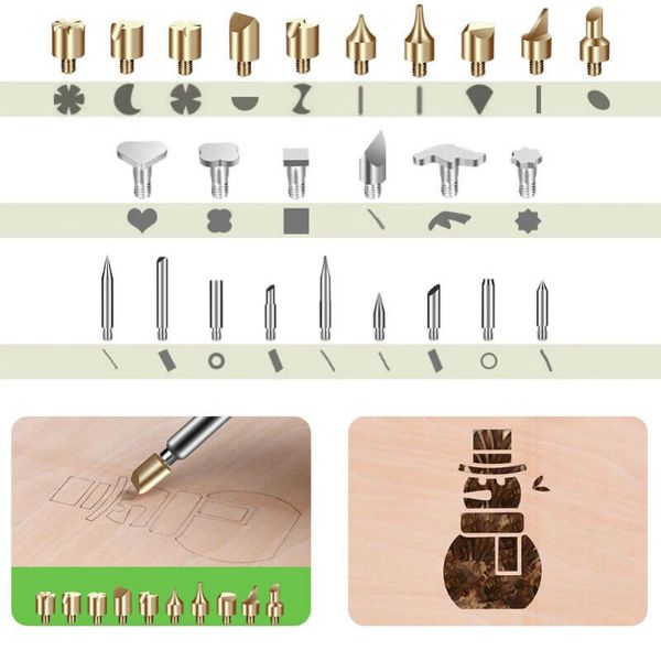 Този мултифункционален комплект с различни приставки за запояване и гравиране на дърво ви позволява да създадете всичко, което можете да си представите. Това го прави идеален за работа с материали като дърво, кожа, восък или корк. Можете да използвате универсалния поялник и за други дейности по запояване, които изискват високо ниво на прецизност.