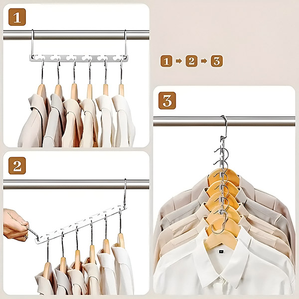 3x Стоманена закачалка за дрехи с пестене на пространство